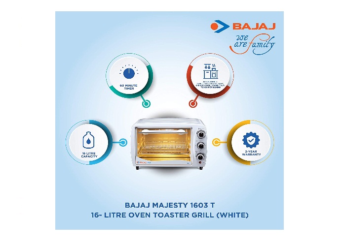 Be the first to review “Bajaj Majesty 1603 T 16-Litre Oven Toaster Grill (White)” Cancel reply